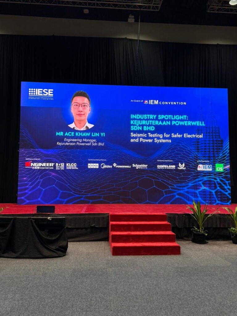During the exhibition, our Engineering Manager, Mr. Ace Khaw, delivered an insightful talk on “Seismic Testing for Safer Electrical & Power Systems”. Powerwell is honoured to be recognized as the first switchboard manufacturer in Malaysia to have successfully tested against earthquake conditions, marking another milestone in our commitment to safety and innovation.